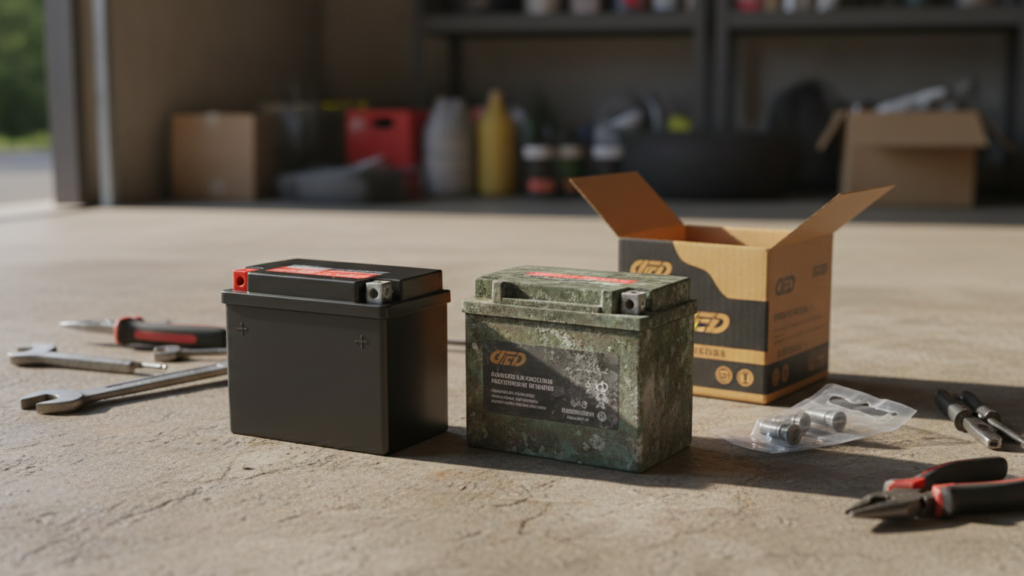 Discoloration, cracked casings, or dried electrolyte stains mean the battery has been stressed or frozen. If I see bulging or hairline cracks, I remove the battery and store it indoors; continued use risks leaks and permanent damage. For guidance on safe handling and corrosion prevention, I consult resources like the Motorcycle Safety Foundation and manufacturer service manuals.