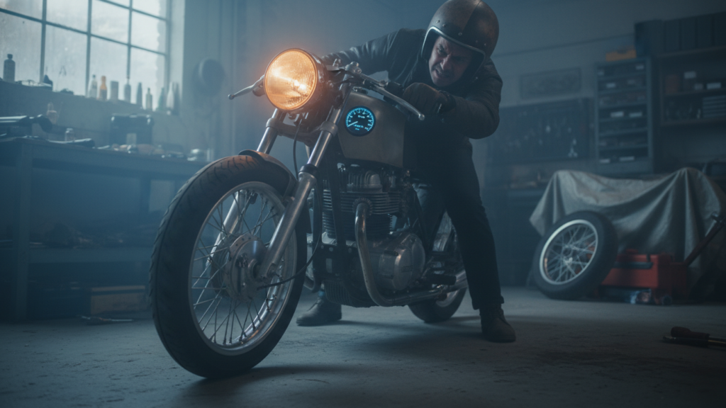 Dim or flickering lights at idle or when accessories run (heated grips, Bluetooth) show the battery cannot hold steady voltage. I also check electronic glitches—resetting trip meters or odd behavior from the ECU can link to low battery power. These symptoms often come before starting failure.