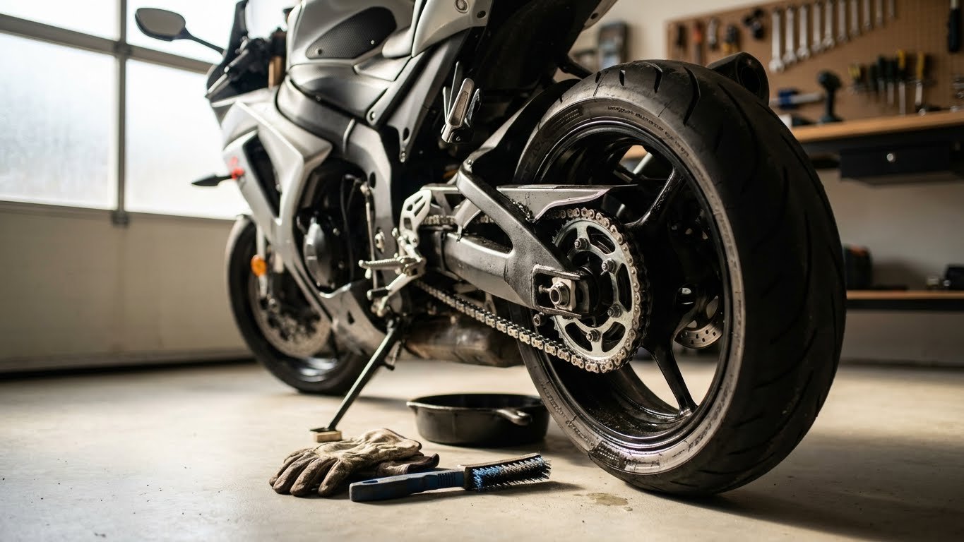 A neglected chain can fail suddenly or skip teeth under load. I treat visible rust, stiff links, or excessive slack as safety issues that require immediate attention. A snapped chain can jam the rear wheel or damage the swingarm and brake components.