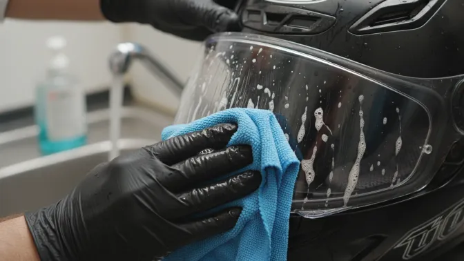 My visor needs careful attention because it affects my vision and safety. I remove it if possible, following the helmet instructions. I clean it using a soft cloth and warm, soapy water, avoiding glass cleaners and abrasive materials that can scratch or fog the surface.