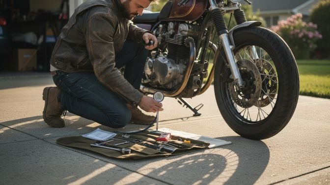 Carry a portable gauge and small pump to top off pressure. If you frequently ride in mixed weather, choose tires rated for wet grip and cooler temps. For more on tire care, I consult resources like Tire Rack and my motorcycle’s service manual.